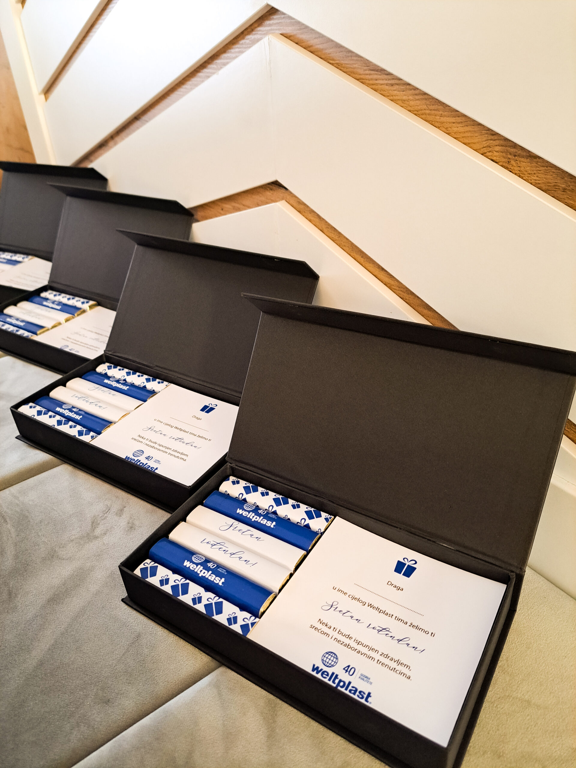 U luksuznim poklon paketima pronaći ćete kombinaciju vrhunskih proizvoda prilagođenom vašem brendu, a personalizirana čestitka, gravura ili personalizacija određenih ili svih predmeta, kao i slanje direktno na adresu primatelja, a u Vaše ime, pojačati će efekt iznenađenja i oduševljenja koji sigurno neće izostati pri primitku poklona.